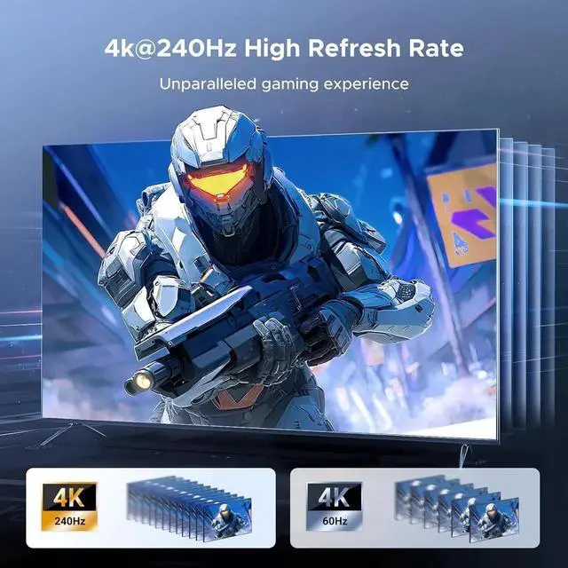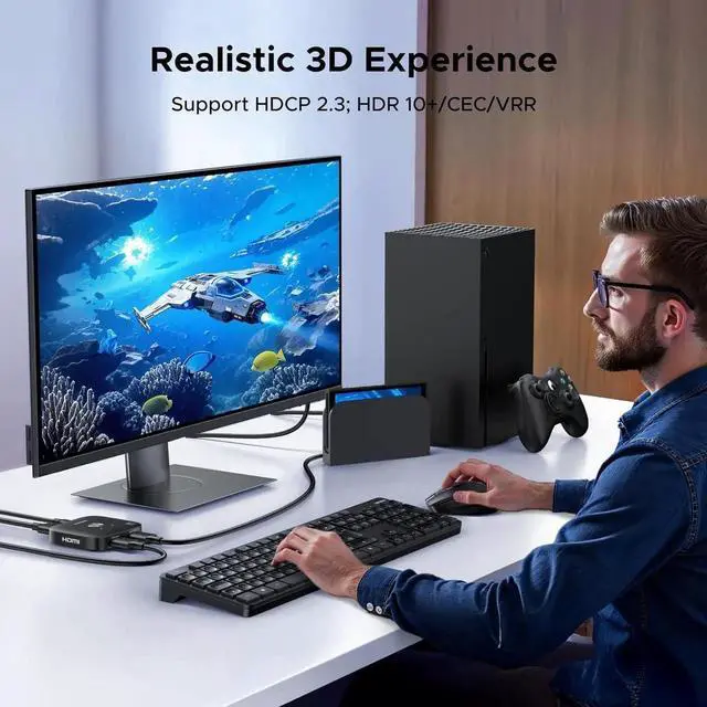 Higher Refresh Rate: Supporting a high refresh rate of 4K@240Hz, 4K@120Hz, 2K@240Hz, and 1080P@240Hz, etc, this 8k HDMI switch 4K@120Hz supports high bandwidth 48Gbps data transmission. It also supports variable refresh rate VRR, Free-Sync and G-sync, which allows the screen's refresh rate automatically adjusted in real time to match the frame rate of the content to avoid screen tearing or stuttering, reduces input lag, and enhances gaming responsiveness
