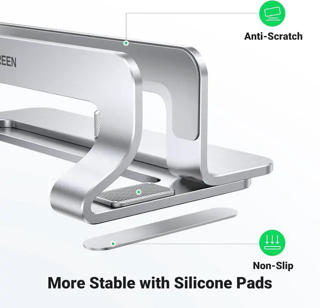 Anti-Slip & Anti-Scratch: The desk laptop stand holder is covered with non-slip silicone pads inside the slot, perfectly protecting your PC from scratches. The base is also covered with silicone pads to avoid slipping or sliding