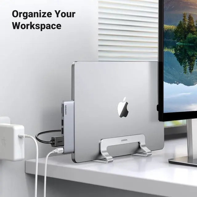 Space-Saving: The vertical laptop stand takes less desk space significantly compared to laying laptop flat. It effectively maximizes desk area for other tasks by holding laptop vertically for storage. A great tool especially when using monitor or keyboard