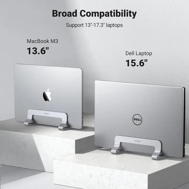 Adjustable Width: The laptop holder stand has extensible slot, which fits laptop with thickness from 0.47" to 1". Simply twist screw, the vertical laptop stand is compatible for MacBook Air, MacBook Pro, HP Notebook, Dell Chromebook, ThinkPad up to 17.3"