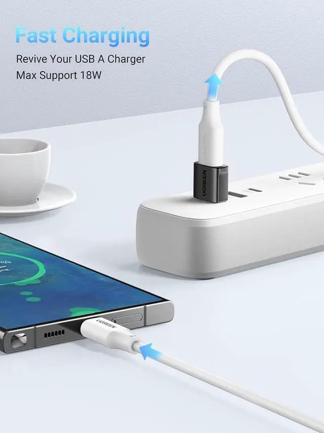 Upgrade Your USB A Charger: With this USB to USB C Adapter, you can easily convert a USB A charger to a new type C charger. Bring USB A Old Plugs to life, avoiding any idleness! Note: Android phones support up to 18w fast charging, and Apple phones support up to 7.5w charging