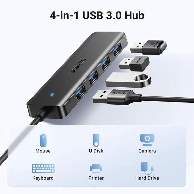 UGREEN USB 3.0 Hub, 4 Ports USB A Splitter Ultra-Slim USB Expander for Mouse, Keyboard, Flash Drive, U Disk, Printer Compatible with Laptop, Desktop PC, Xbox, PS5, and More