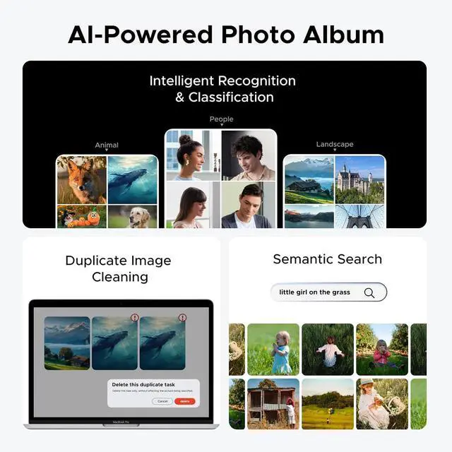 AI-Powered Photo Album: Automatically organizes your photos by recognizing faces, scenes, objects, and locations. It can also instantly remove duplicates, freeing up storage space and saving you time.