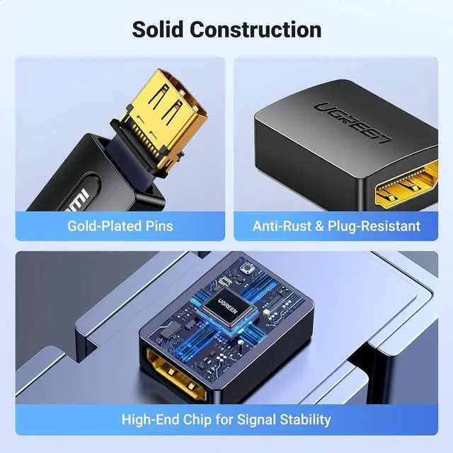 Extend Your HDMI Cables Effortlessly: UGREEN HDMI coupler female to female is an ideal solution for extending the length of your HDMI cables when using a projector, Xbox, or when equipment is far from the screen. Simply connect two HDMI cables with the coupler to create a single, continuous HDMI cable