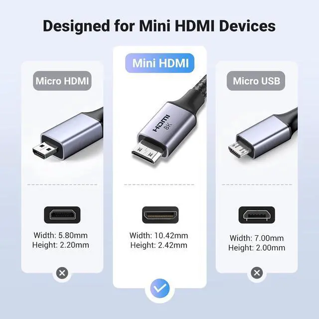 Bi-Directional Mini HDMI to HDMI Cable: UGREEN mini HDMI 2.1 cable converter easily converts the mini HDMI port on your laptop, camcorder, camera, or even some tablet to a standard HDMI Type A interface on TV, monitor, or projector. Bi-Directional Transmission features, support mini HDMI to HDMI & HDMI to mini HDMI. (NOTE: This is a Mini HDMI to HDMI cable, not a micro HDMI.)