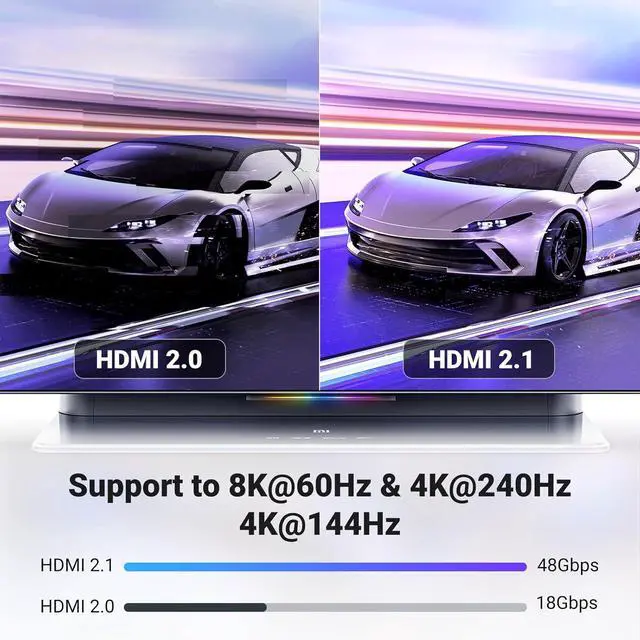 48Gbps Super High Speed: This HDMI 2.1 cable supports up to 48Gbps bandwidth, much faster than HDMI 2.0 and HDMI 1.4