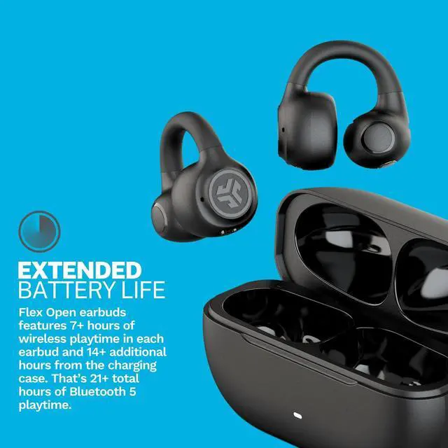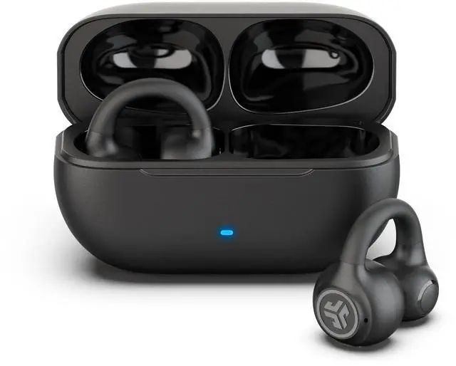 JLab Flex Open Earbuds, Black, Open-Ear Clip Design, 21+ Hr Playtime, IPX4, Multipoint, Clear Calls, Fast Pair