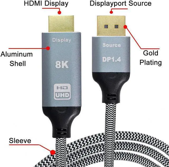 Gold-plated dp to hdmi monitor cable Video 8K,4K UHD 2160p, HD 1080p, connectors, tinned copper wire, durable Nylon Braided, aluminum slim case, all of them ensure a strength connectivity between devices;