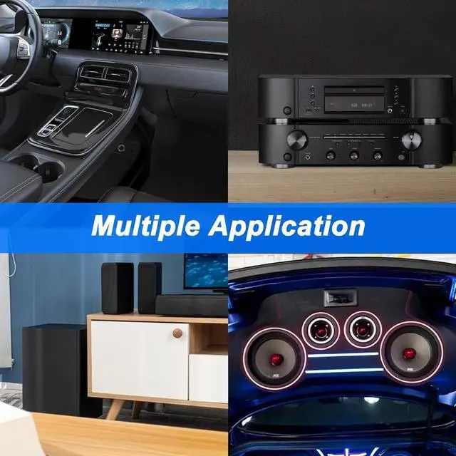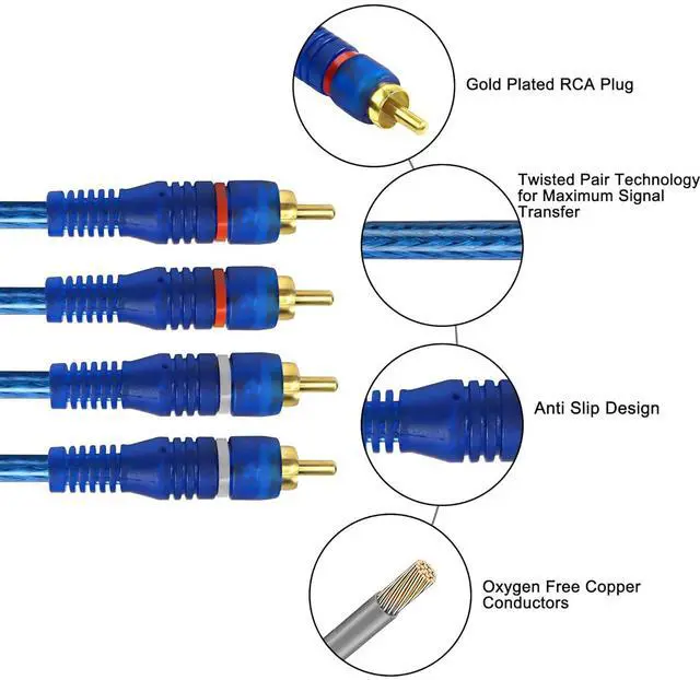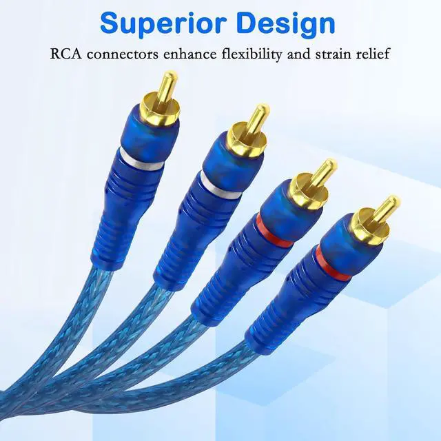MEIRIYFA RCA car audio interconnect cable 2 channel to 4 channel connects professional, automotive and home audio equipment. It provides clear stereo signals for car audio, marine audio, motorcycle audio and racing audio.