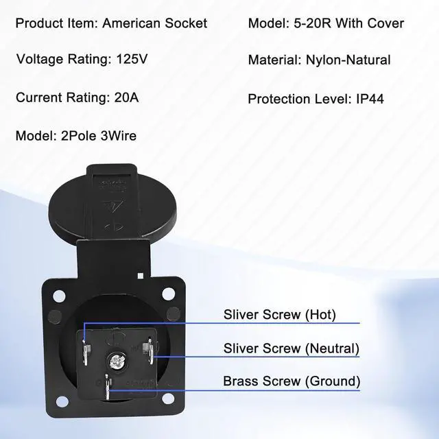 MEIRIYFA125 Volt NEMA 5-20R Outlet is suitable for trailers, campers, RVs, cars, boats, all kinds of power supply, air conditioners, refrigerators, washing machine sockets, can be matched with furniture, equipment and other installations, can also be used indoors and outdoors, bathrooms, bathroom filters, car power supply, generators and so on.