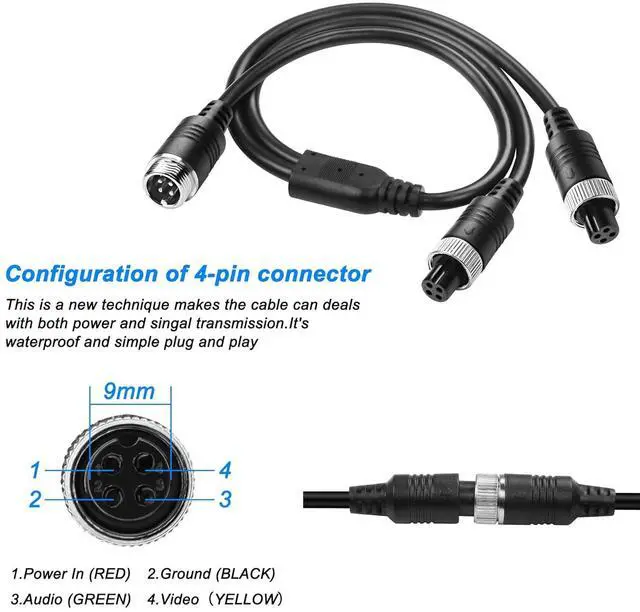 Adopting new oxygen-free copper core, more stable transmission. Adopt 1 to 2 design, can connect two devices at the same time. One cable can complete the transmission of power, video and audio signals. No additional power cable is needed to connect the reverse rear view camera.