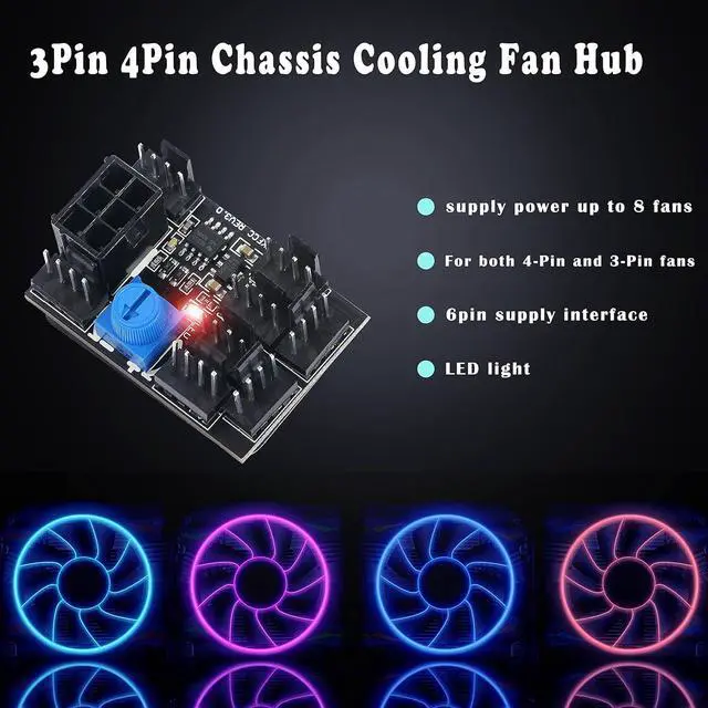 3 Pin 4 Pin Fan Adapter PWM PC Chassis Cooling Fan Hub 8 Way Splitter DC12V Speed Controller with 6 Pin Power Port,Chassis Fan Pressure Regulating Governor