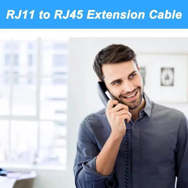 MEIRIYFA RJ45 to RJ11 telephone Jack adapter cable connects analog telephone devices (phone, fax, caller ID) through the Ethernet jack. Converts phone jack to network jack, suitable for phone line to network line use.