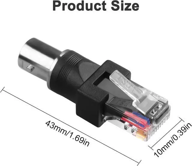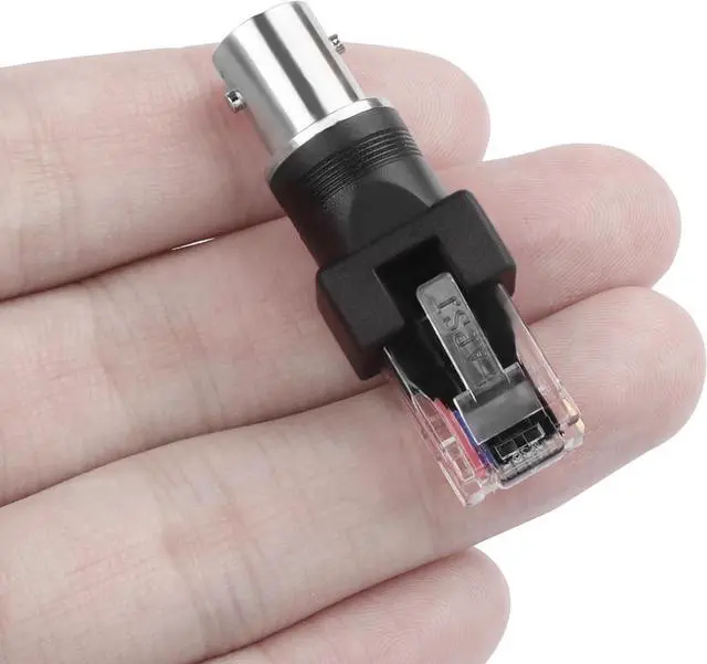 RJ45 to BNC connector, lightweight, compact, and durable. Made of plastic and metal, it is lighter to use, easy to write channels, and meets your daily needs.