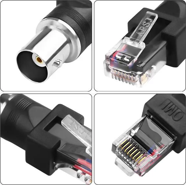 Connector A: BNC female connector, connector B: RJ45 plug, RF adapter, BNC to RJ45. Plug and play, not easily damaged. Loosely connect and disconnect.