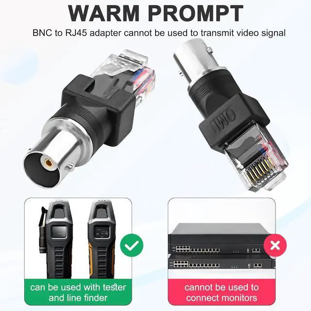 MEIRIYFA BNC to RJ45 Ethernet adapter can be tested using BNC monitoring cables, testers, line finders, and other testing equipment. It can also be used as a line finder to make inspection work more flexible.