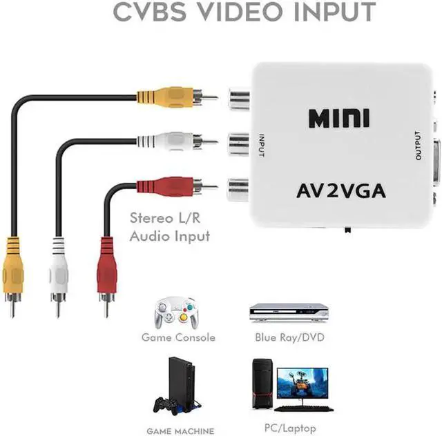 HD RCA AV to VGA Video Converter Conversor AV 2 VGA Video Converter