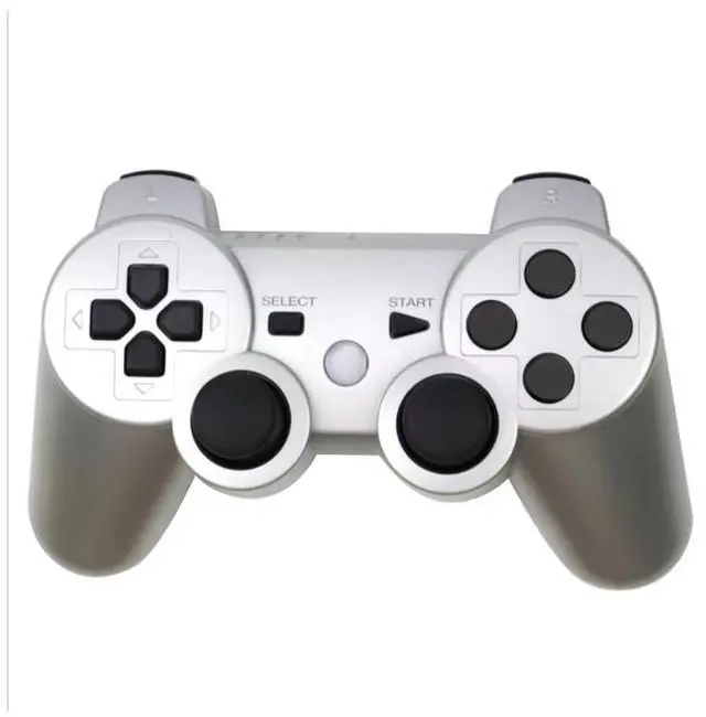 PS3 controller with dual vibration function, blank buttons onthe controller, PS3 wireless Bluetooth game controller with dual vibrationfunction. Silver
