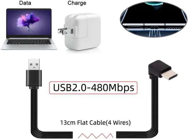 USB 2.0 Type-A Male to USB-C Type-C Male 90 Degree Angled Data Flat Slim FPC Cable for FPV & Disk & Phone 13cm