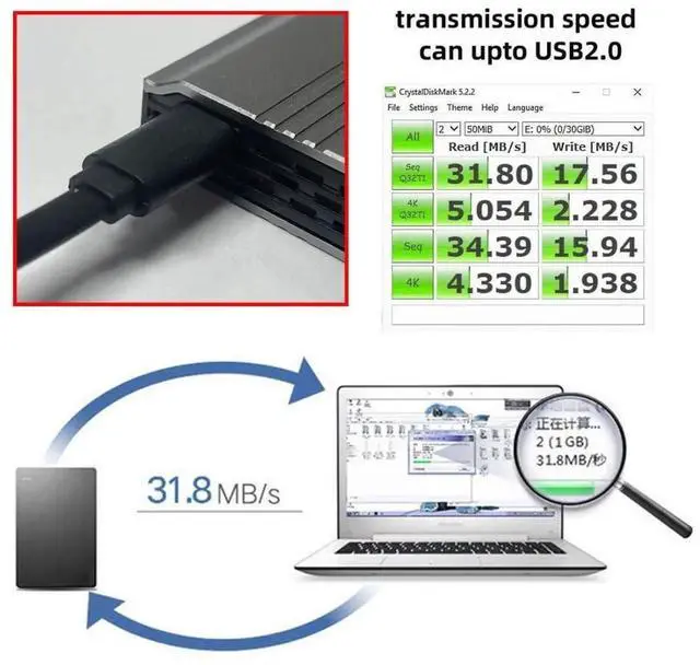 Note: The cable only transfer the USB 2.0 data, can't connect usb-c video/audio/thunderbolt device.