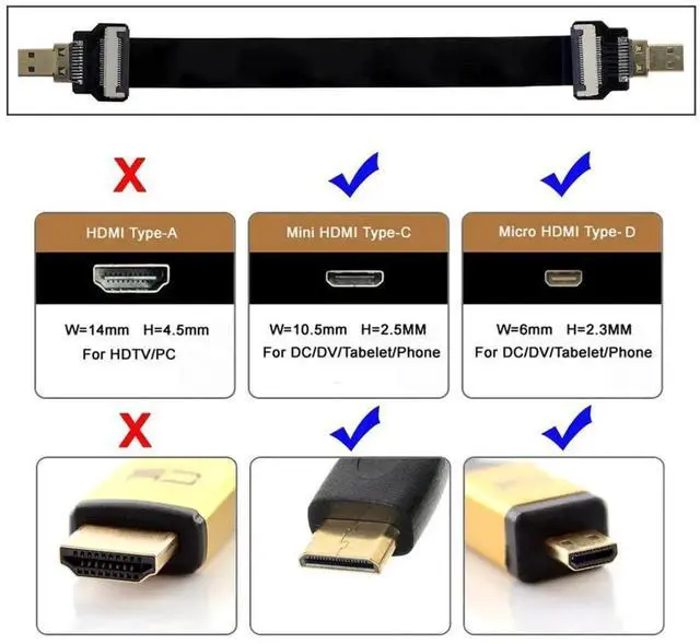 Micro HDMI Male to Male Extension FPC Flat Cable 1080P for FPV HDTV Multicopter Aerial Photography 0.5M