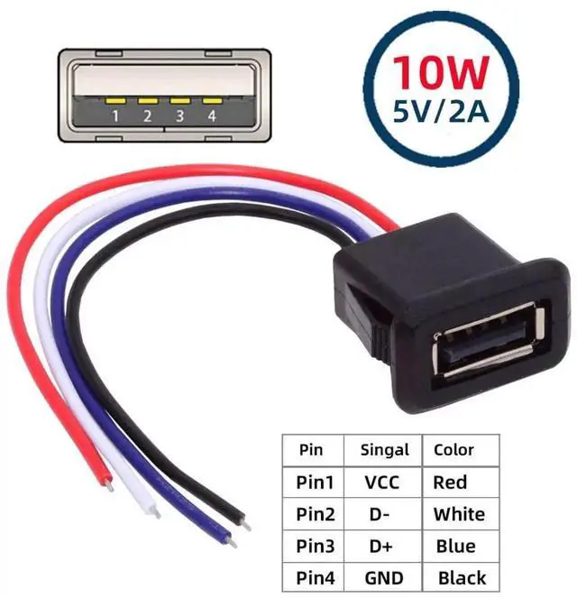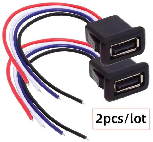 2 Pack 4Pin Open Cable to USB 2.0 Female DC 5V 2A Flush Mount Charging Data Transfer Socket Port Conversion Cable Adapter