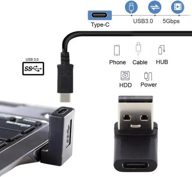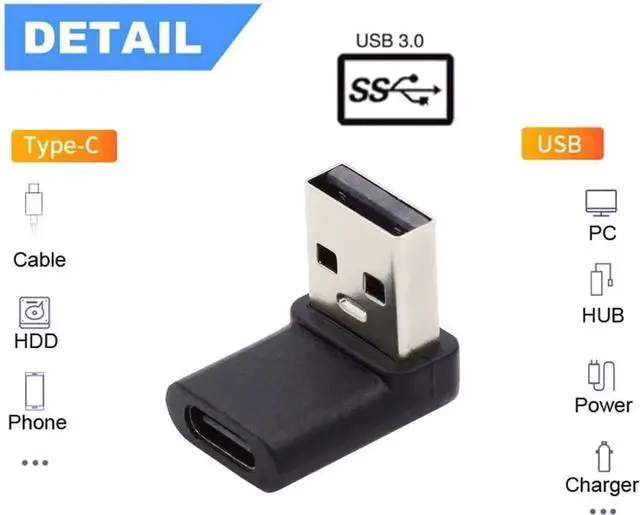 USB C to USB Adapter,USB Type C Female to Type A Male Data Adapter 90 Degree UP Angled for Laptop Desktop