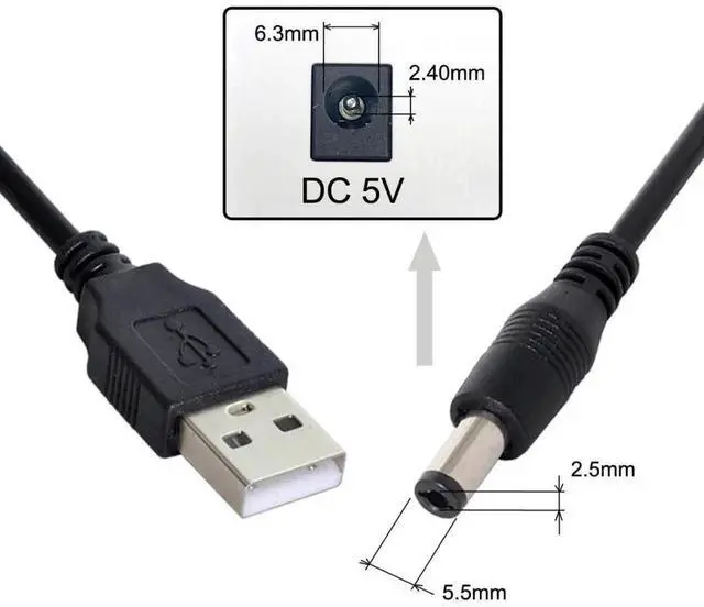 USB 2.0 to 5.5 x 2.5 mm DC 5V Power Plug Charge Cable.