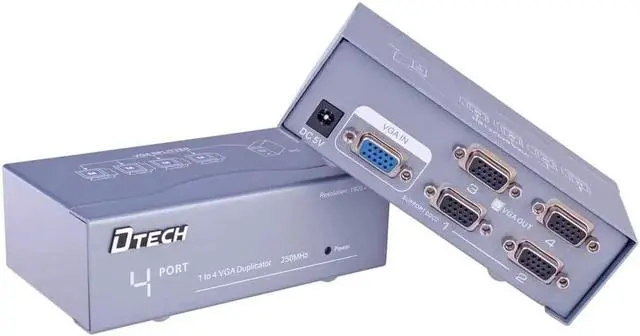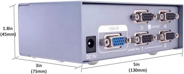 (for image mirror, not support extended desktop) 4-port VGA video distribution box copies a single video source signal and split it to multiple VGA monitors (simultaneous display with the same image on each monitor)