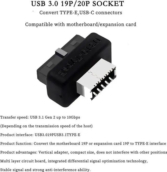Function: 19P motherboard or expansion card 19P to TYPE-E interface.