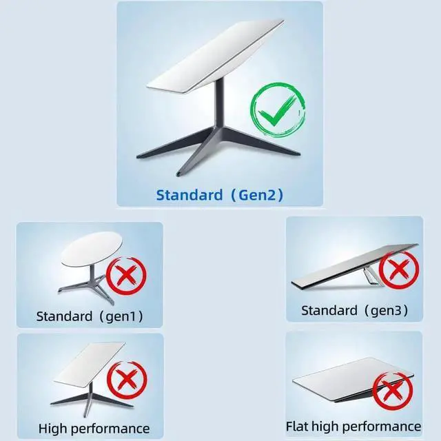 Compatibility & Exclusions Compatible with Starlink Standard (Gen 2 / V2) only. Not compatible with Standard (Gen 1), Standard (Gen 3), High Performance, or Flat High Performance terminals.