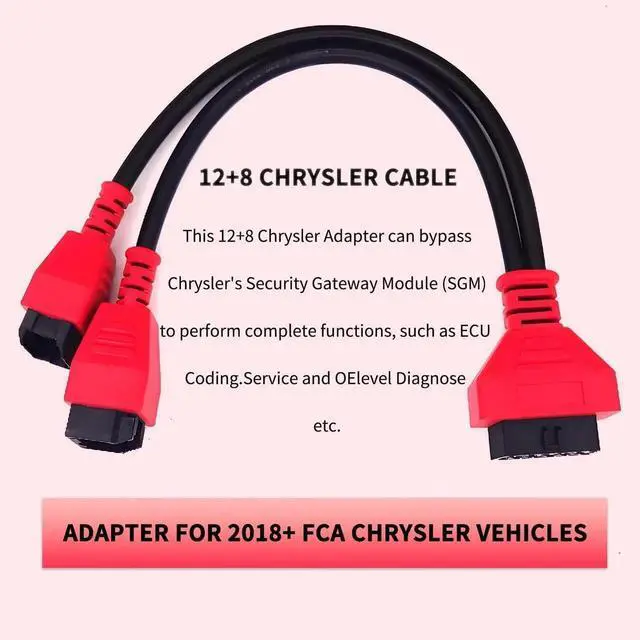• Quick 3-Step Installation, No Programming Needed Simply unplug the original 12-pin and 8-pin connectors from the SGW, connect this 12+8 adapter cable, and start scanning. No special tools or software modifications required just plug and play for compatible FCA vehicles.