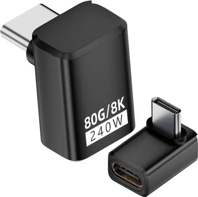 Multi Angle Design: 240w 80gbps usb c adapter offers 4 type: Low ProfileAngled, Right Angle,Up/DownAngle, Straight. 90 degree usb c male to female adapter is convenience to fit snugly without protruding, it protects your devices port and prevents cable wear. Perfect for organizing your workspace and ensuring a clean, clutter-free setup
