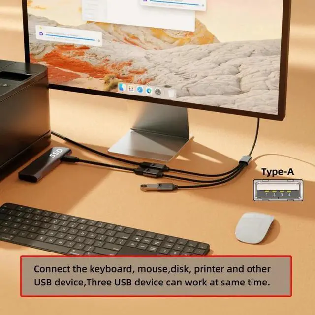 The USB 2.0 female and power canwork at same time; Can Connect the keyboard mouse, disk, printer and other