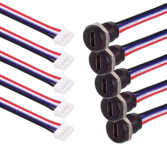 5pcs/set DIY OEM Type C Female Socket to 4Pin Header Cable Pitch=2.0mm Panel Mount Type DC 5V Power Data