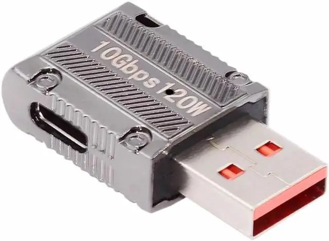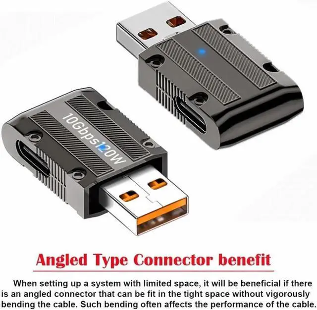 USB-C USB 3.1 Type C Female to USB 3.0 Type-A Male 90 Degree Angled Type 10Gbps Data 120W Power Adapter Alloy Shell