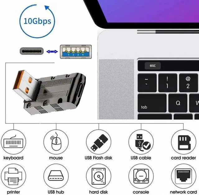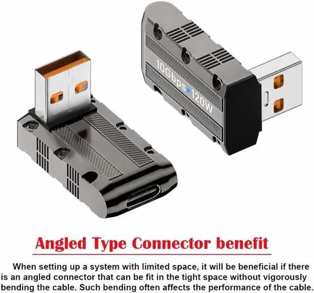 USB-C USB 3.1 Type C Female to USB 3.0 Type-A Male 90 Degree Angled Type 10Gbps Data 120W Power Adapter Alloy Shell