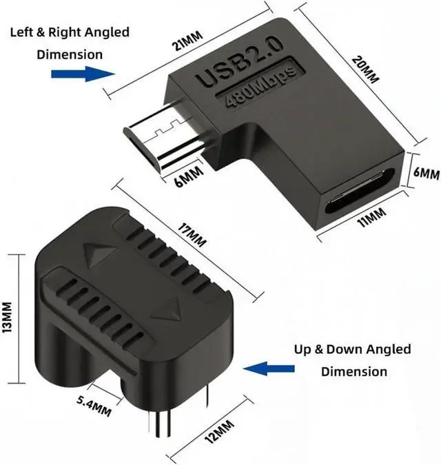 The package included 4pcs adapter(Angled Left+Right+Up+Down).Support Scalable DC5V power charging.