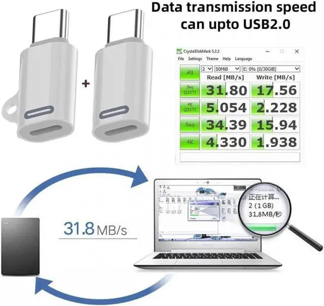 USB-C Type C Male to 8P Female 27W Power 480Mbps Data Adapter Compatible with iPhone 15 & Android & Tablet