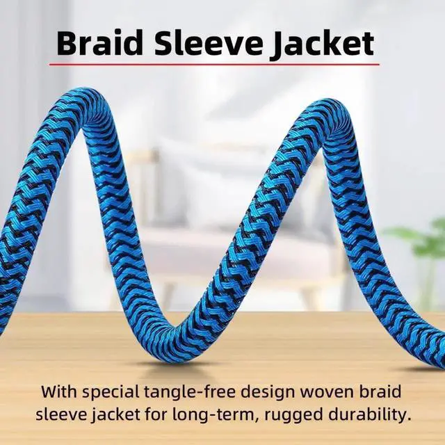 Blue aluminum alloy shell,Light and easy to carry.With special tangle-free design woven braid sleeve jacket for long-term, rugged durability.