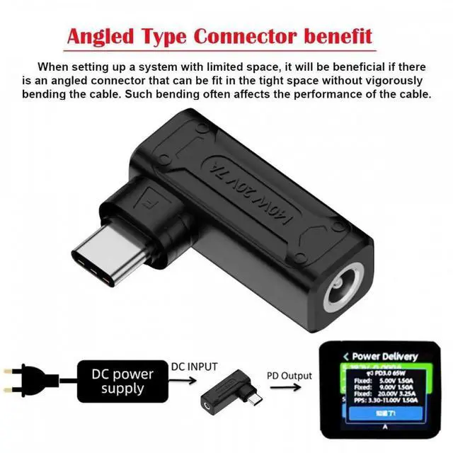 140W 100W DC Jack 5.5x2.5mm Input to USB-C Type-C Angled 90 Degree Power Plug Charge Adapter for Laptop Phone