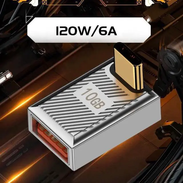 • USB-C USB 3.1 Type C Male to USB 3.0 A Female 10Gbps OTG Data 120W Power Up Down Angled Adapter Alloy Shell Mecha Cyberpunk Style