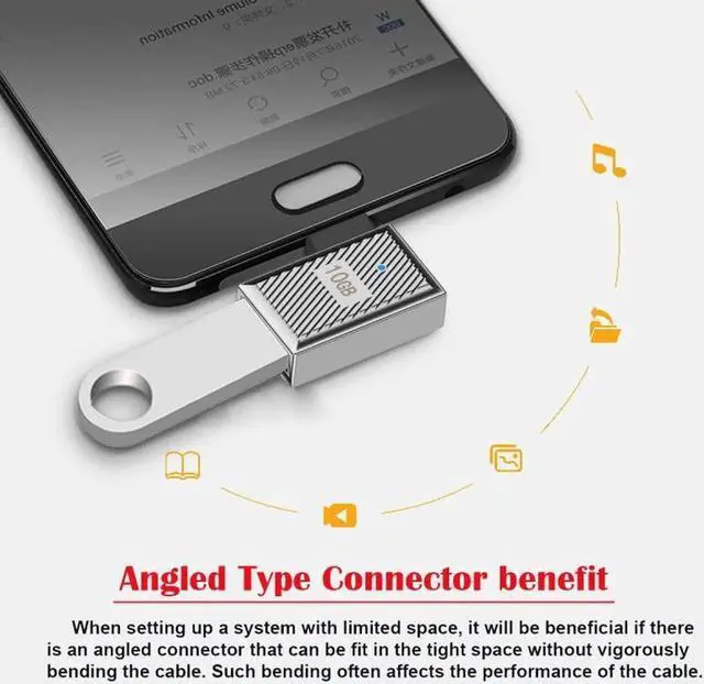 The angled type Allowing you to connect it to a female port, even if space around the port is limited.