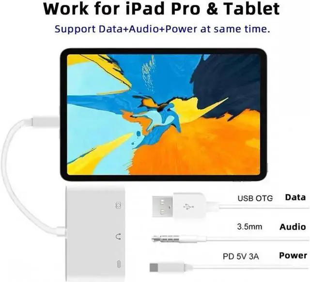 Type C USB-C to 3.5mm Audio AUX & Type-A USB2.0 OTG Female with PD Power Charge Adapter Compatible with Laptop Tablet Phone