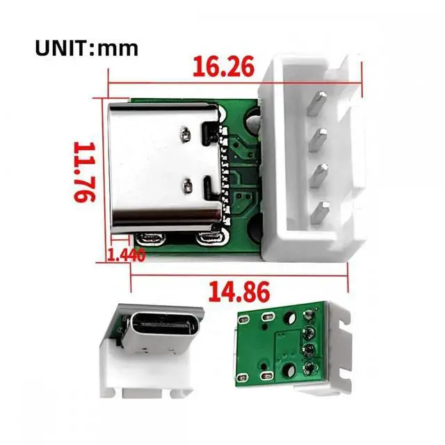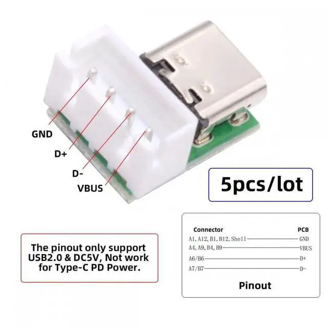 Note: The pinout only support USB2.0 data DC5V power, Not work for Type-C PD function.