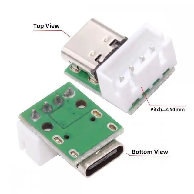 5pcs/set DIY OEM Type C Female Socket Connector to 4Pin Pitch=2.54mm Wafer Socket Vertical USB2.0 Pinout DC 5V Power
