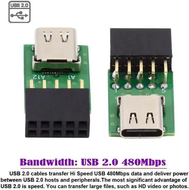 Single Port USB 3.1 Type C USB-C Female to USB 2.0 Motherboard 9pin 10pin Header Adapter PCBA 480Mbps