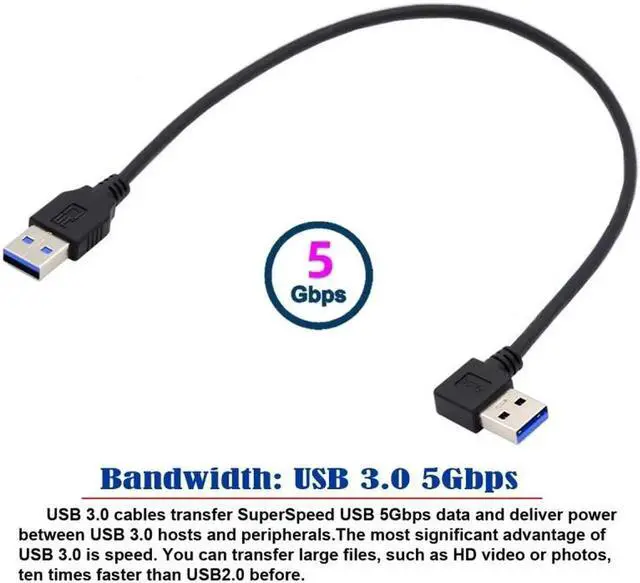Angled USB 3.0 Type-A Male to Straight 3.0 Type-A Male Data 5Gbps Cable 90 Degree Left Angled 40cm