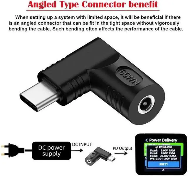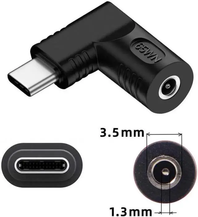 DC Jack 3.5x1.35mm Input to USB-C Type-C Angled 90 Degree Power Plug Charge Adapter for Laptop Phone