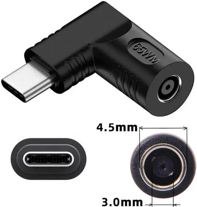 DC Jack 4.5x3.0mm Input to USB-C Type-C Angled 90 Degree Power Plug Charge Adapter for Laptop Phone